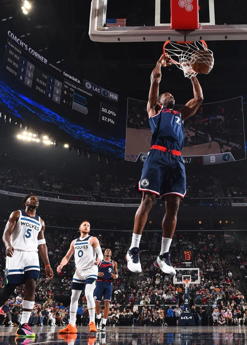 本场比赛,快船队球员科怀-伦纳德出战31分钟,投篮20中15,三分球9中6,罚球10中9,得到45分5篮板5助攻2抢断,正负值高达+41。